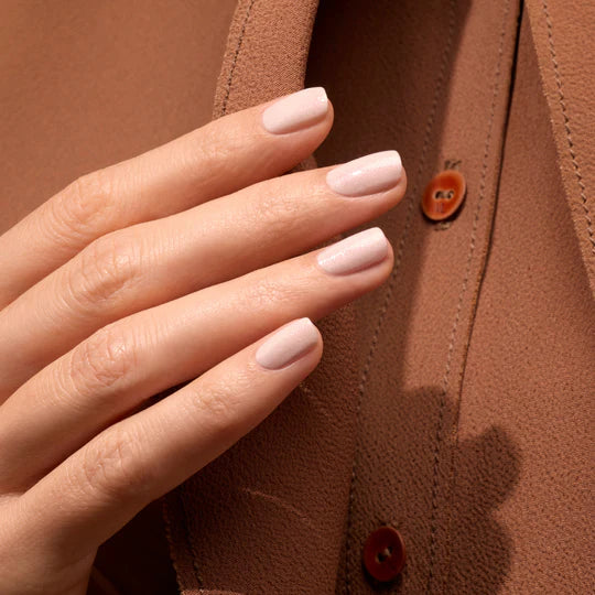 Zacht en glossy roze met iriserende schakeringen, een vleugje natuurlijk licht.