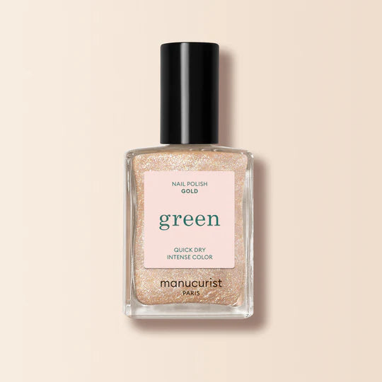 Een goudkleurige nagellak met glitters