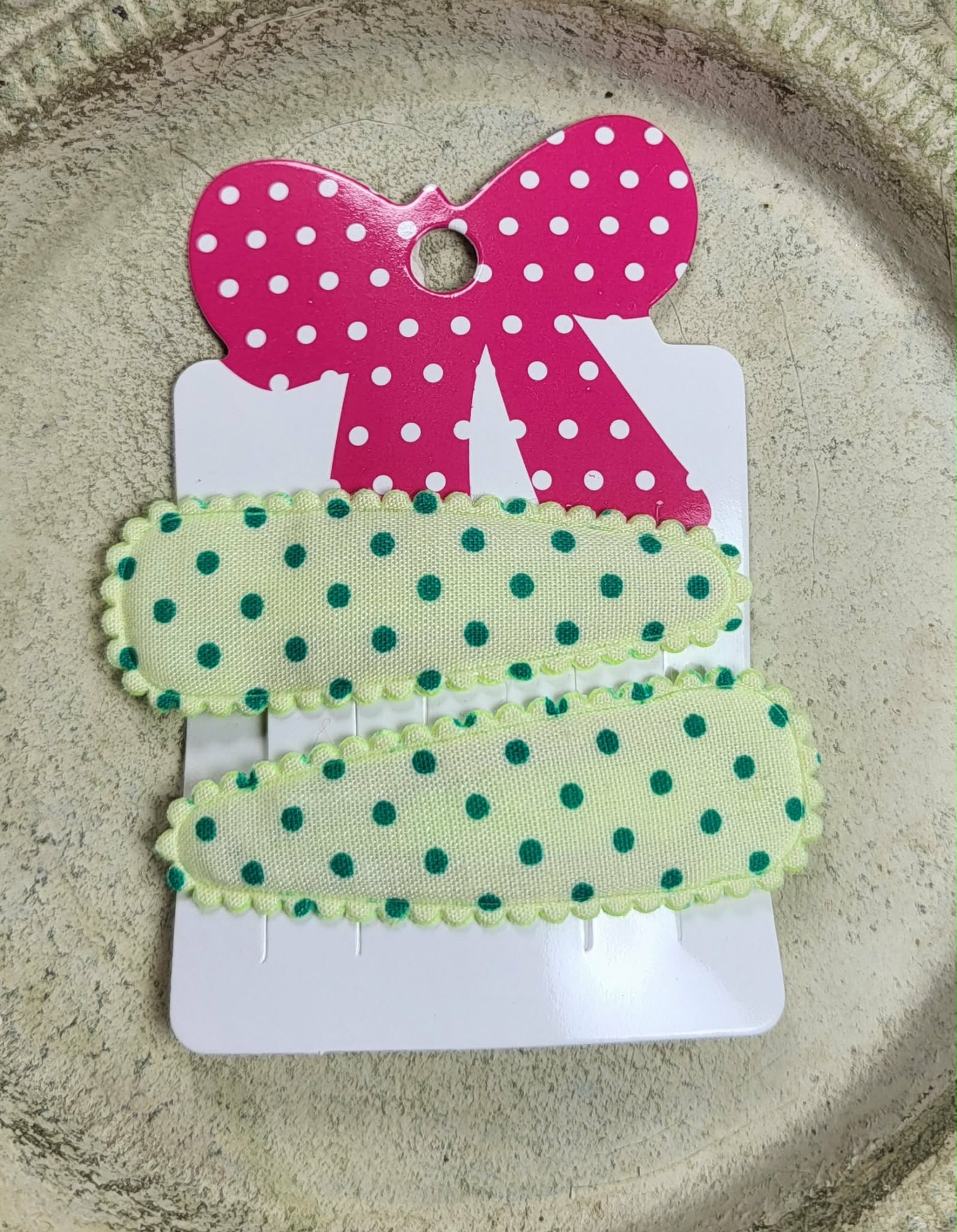 Kind klikspeld lichtgroen met donkergroene stippen