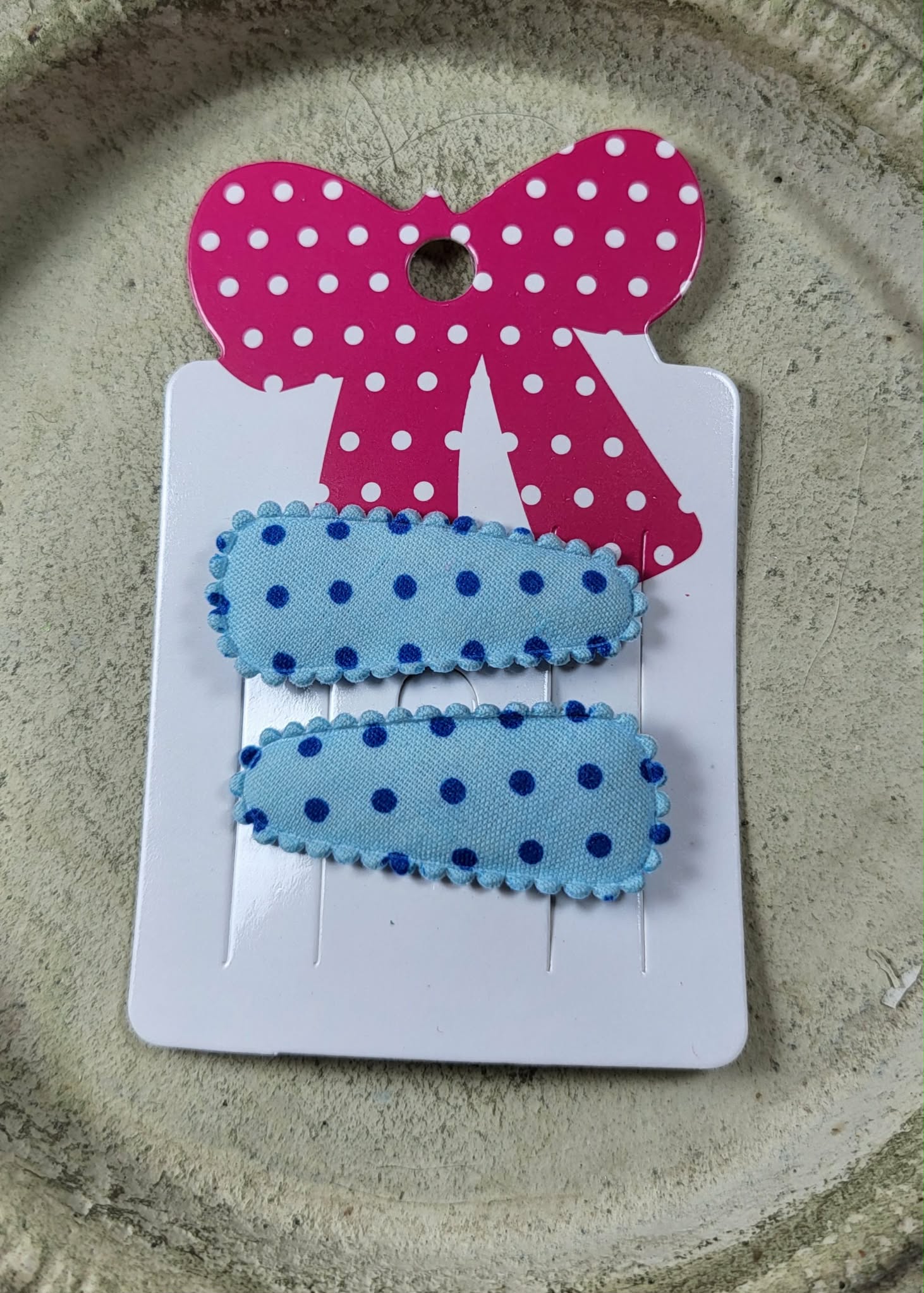 Baby klikspeld lichtblauw met donkerblauwe stippen